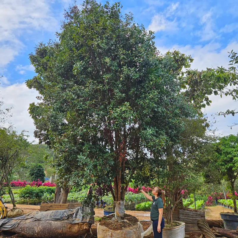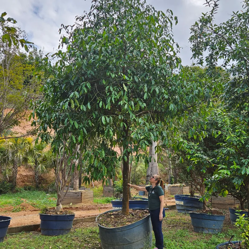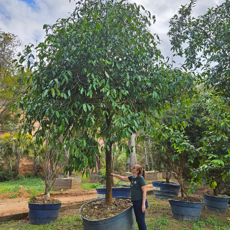 A Abiu Roxo, também conhecida como Caimito, é uma árvore frutífera tropical de médio a grande porte, podendo atingir até 20 metros de altura quando adulta. Sua copa é ampla e arredondada, com folhas verdes brilhantes na parte superior e esbranquiçadas na inferior. Os frutos são arredondados, de coloração roxa intensa, com polpa doce e gelatinosa, muito apreciada in natura. Ideal para climas quentes e úmidos, adapta-se bem a solos férteis e bem drenados. É uma planta adulta e pronta para replantio, recomendada para pomares, paisagismo tropical e áreas rurais.