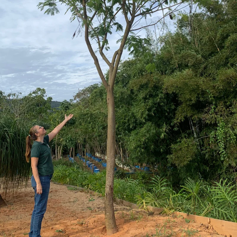 O Angico-Vermelho é uma árvore de grande porte, podendo atingir até 30 metros de altura com copa ampla e densa. Suas folhas compostas têm um tom verde-claro delicado, enquanto suas flores pequenas e esbranquiçadas formam inflorescências vistosas e perfumadas no verão. É muito utilizada em reflorestamentos, sombreamento de pastagens, recuperação de áreas degradadas e paisagismo rural. Prefere solos bem drenados e férteis, adaptando-se bem a climas tropicais e subtropicais. Planta adulta e pronta para replantio, ideal para sítios, fazendas e projetos ecológicos.