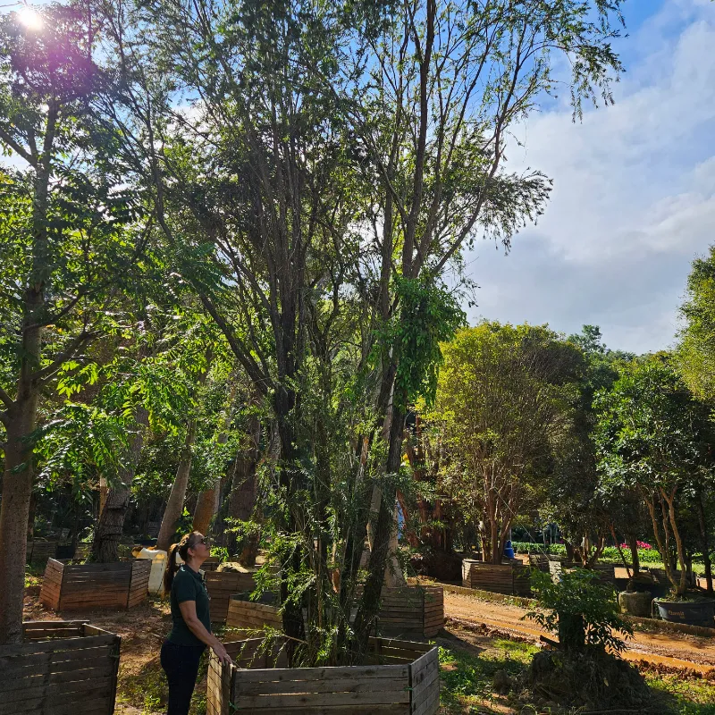A Escova-de-garrafa é uma planta ornamental de médio porte, que atinge entre 3 e 6 metros de altura quando adulta, com copa densa e folhas estreitas, alongadas e pontiagudas. Seu grande destaque são as inflorescências em forma de escova, de coloração vermelho-vivo, que aparecem em profusão durante a primavera e o verão, atraindo beija-flores e abelhas. Ideal para paisagismo urbano, calçadas, jardins e reflorestamento ornamental. Adapta-se bem a solos férteis, com boa drenagem, e tolera tanto clima subtropical quanto tropical. Planta adulta disponível, pronta para replantio.