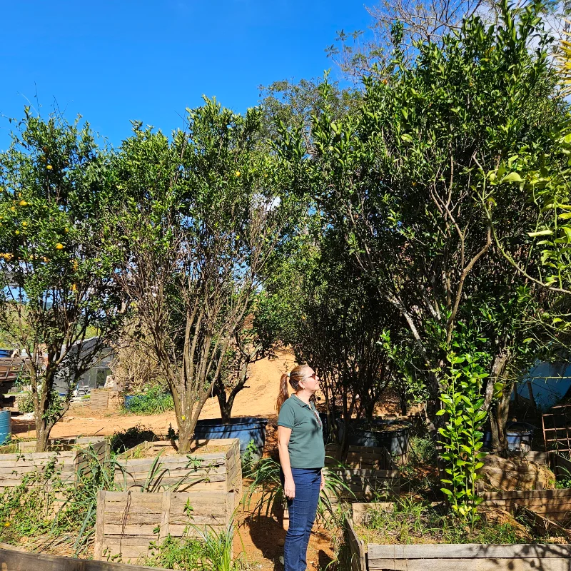 Sim, especialmente em sítios, quintais e áreas rurais. Também pode ser usada em projetos urbanos com foco em frutíferas.