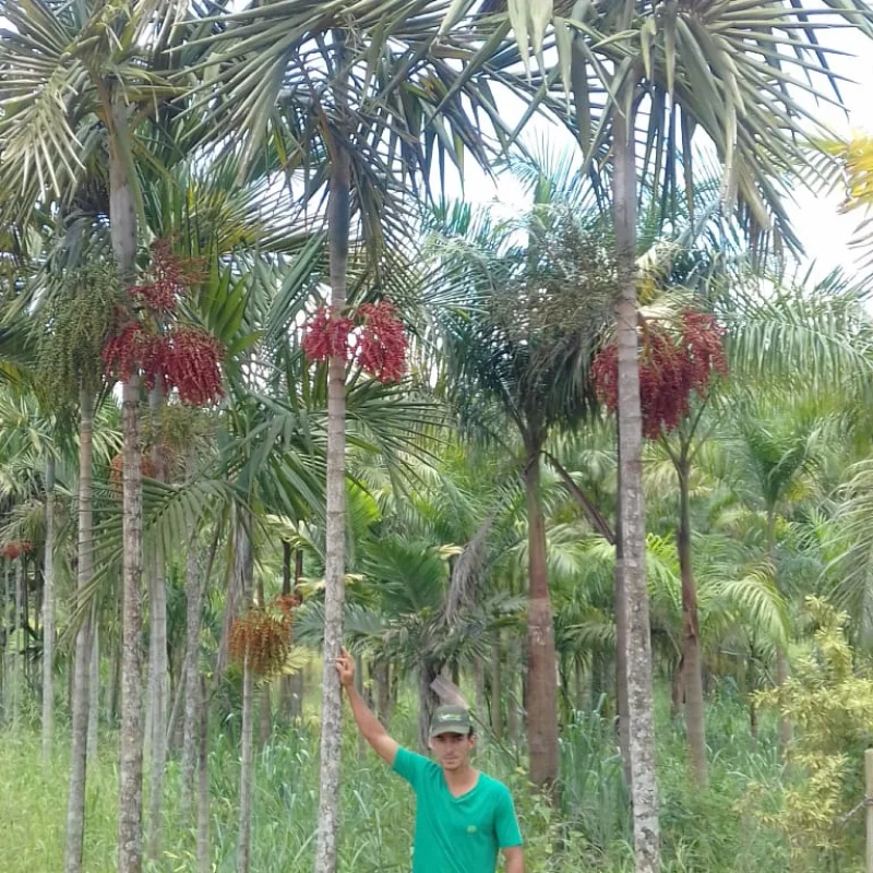 A Palmeira Elegans, também conhecida como Palmeira-Alexandra, é uma espécie tropical de grande beleza ornamental, atingindo até 20 metros de altura quando adulta. Seu tronco é reto, liso e cinza-claro, com uma copa elegante de folhas pinadas e arqueadas de coloração verde vibrante. Produz flores pequenas, brancas, seguidas de frutos vermelhos que atraem aves. Ideal para paisagismo de destaque em áreas urbanas ou rurais, ela se adapta bem a climas quentes e úmidos, preferindo solos férteis e bem drenados. Esta é uma planta adulta, pronta para replantio.