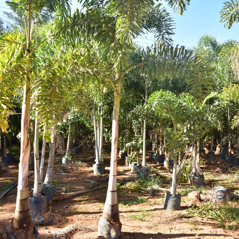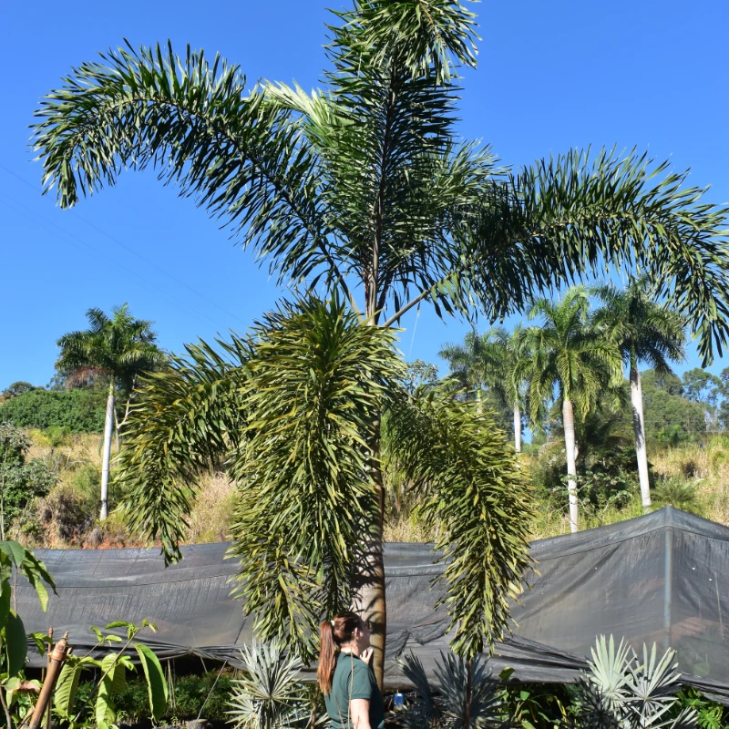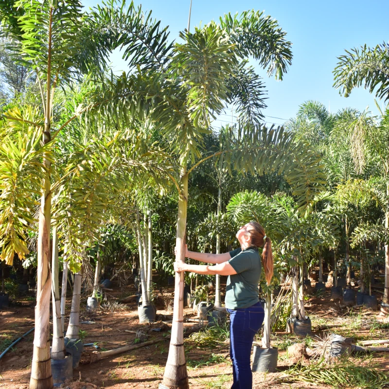 A Palmeira Rabo de Raposa é uma espécie exótica de grande apelo ornamental, atingindo até 10 metros de altura na fase adulta. Seu nome vem do formato das folhas, que lembram a cauda de uma raposa: plumosas, arqueadas e de coloração verde vibrante. De crescimento moderado, ela forma um tronco único, liso e cinza-claro, com copa elegante. Ideal para composições paisagísticas urbanas ou rurais, é resistente ao calor e se adapta bem a climas tropicais e subtropicais. Planta adulta, pronta para replantio.
