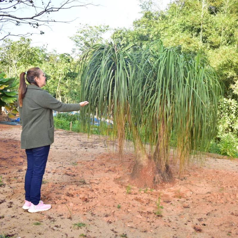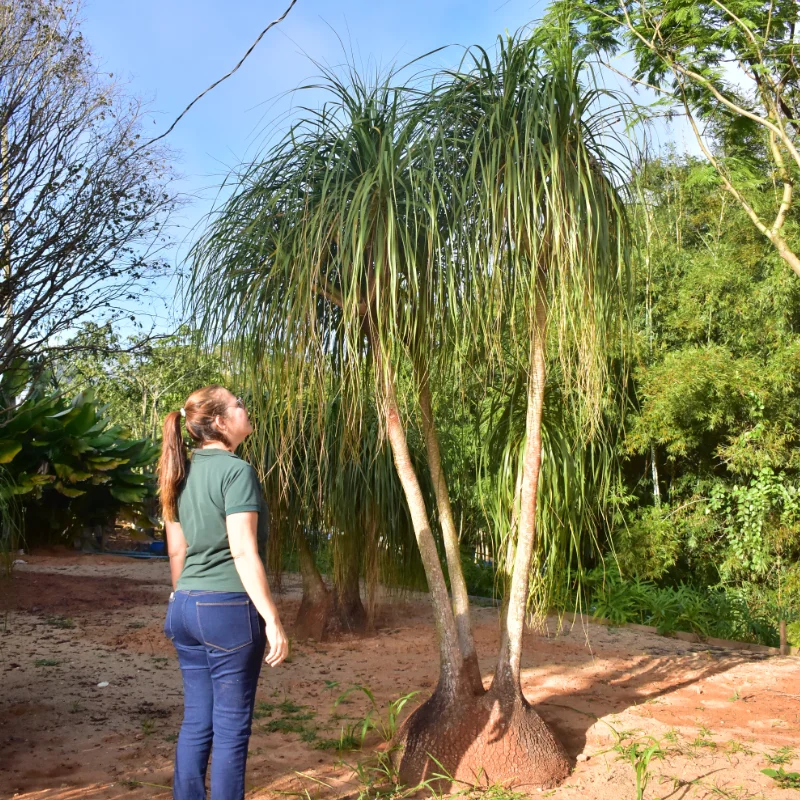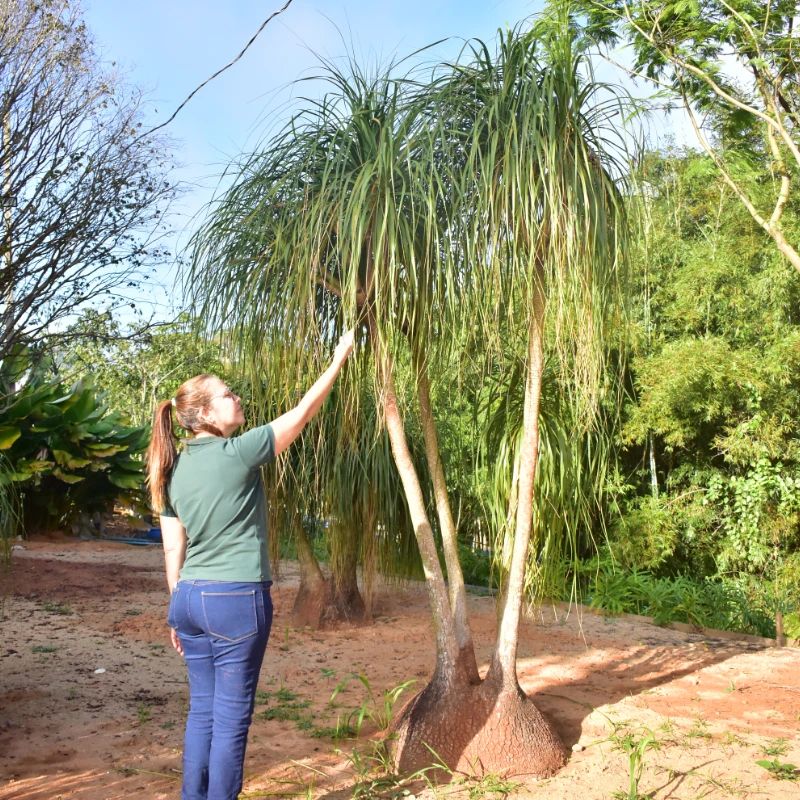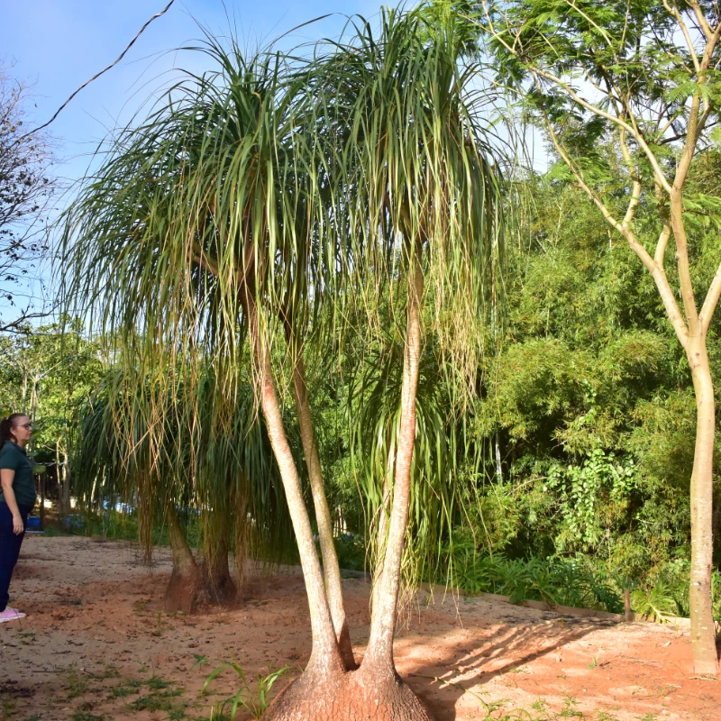 A Pata de Elefante é uma planta ornamental de porte médio, conhecida por seu tronco engrossado na base — que lembra uma pata de elefante — e folhas longas, finas e recurvadas em formato de fonte. Quando adulta, pode atingir até 4 metros de altura em cultivo pleno. Seu visual escultural a torna ideal para paisagismo contemporâneo. Resistente à seca, adapta-se bem a solos arenosos e climas quentes. É perfeita para replantio imediato em jardins, calçadas largas, entradas de imóveis e áreas externas ensolaradas.