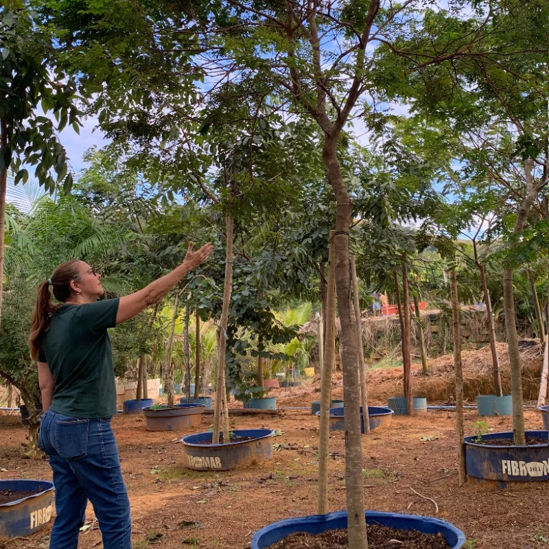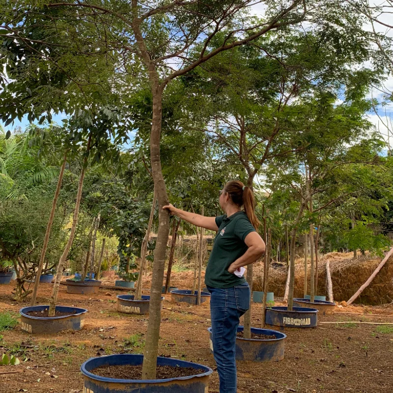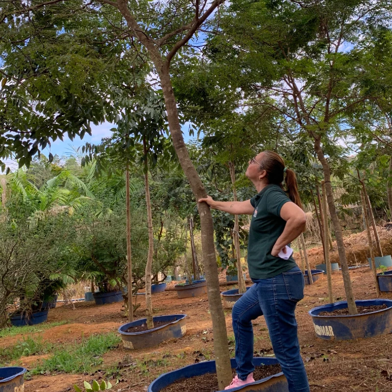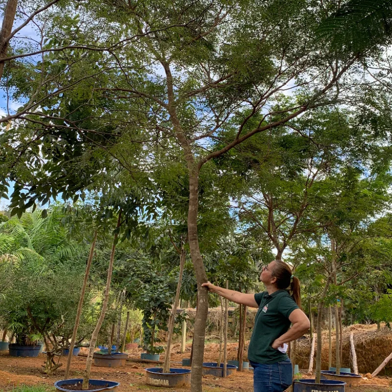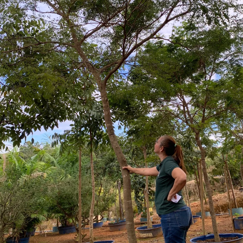 A Sibipiruna é uma árvore nativa do Brasil, muito valorizada em projetos de paisagismo urbano e reflorestamento. Quando adulta, atinge entre 8 a 18 metros de altura, com copa ampla e ramificada, proporcionando excelente sombra. Suas folhas são bipinadas e delicadas, e na primavera exibe uma floração amarela vibrante que atrai abelhas e outros polinizadores. Adapta-se bem a climas tropicais e subtropicais, preferindo solos bem drenados e férteis, mas é resistente e tolera solos pobres. Planta adulta, ideal para replantio em áreas urbanas, fazendas e projetos ecológicos.